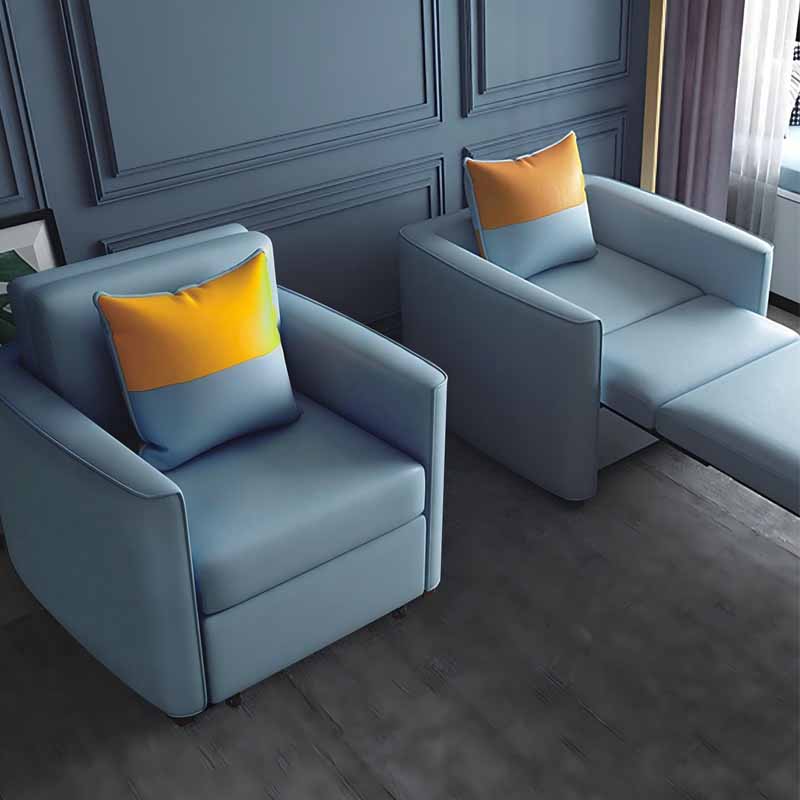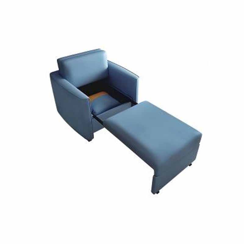 La silla presenta un diseño exterior tipo sofá. La tapicería es de cuero sintético calandrado de PU ecológico. Tiene una estructura de madera maciza, un compartimento de almacenamiento oculto y ruedas silenciosas. El interior de la silla está equipado con rieles guía silenciosos y engrosados que permiten una extensión y retracción suaves y sin esfuerzo.